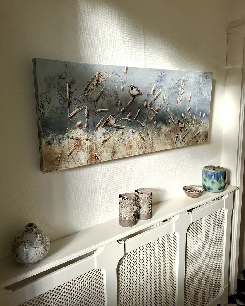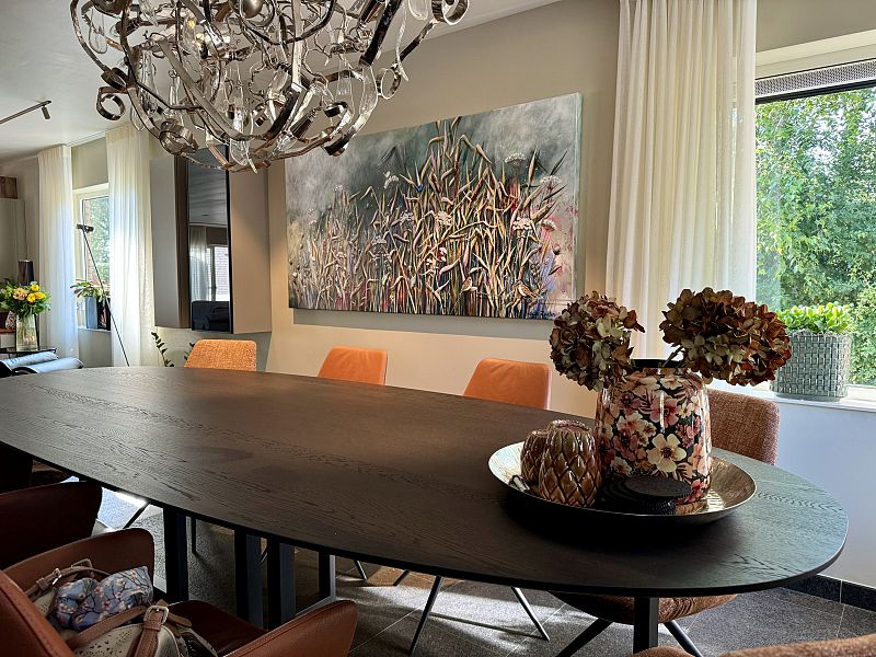 We had been looking for a painting for a long time. And suddenly Susan's nature paintings came by on Instagram. We went to the studio and were immediately enthusiastic. There, in consultation with Susan, we let her know our wishes, which she could work on. Susan also came by with paintings for the right size and colors that would suit us. It was also nice that Susan thought along with our wishes. We are very happy with Polder Paradise!!!