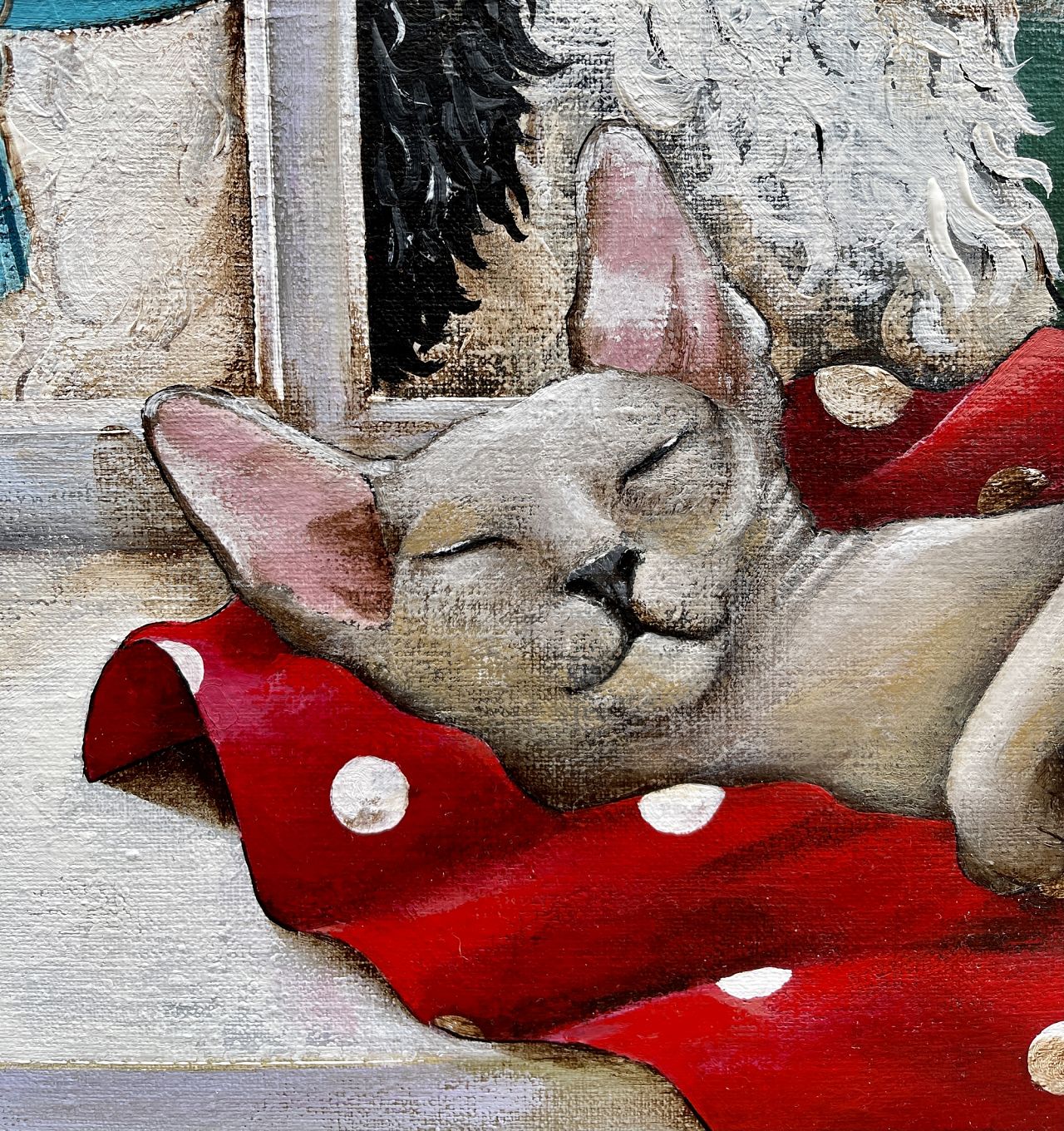 'Susan, I'm so happy with the painting you made for me last year that I'd like to see one of yours in the kitchen too. Can you make a design with our 7 dogs and sweet cat?'