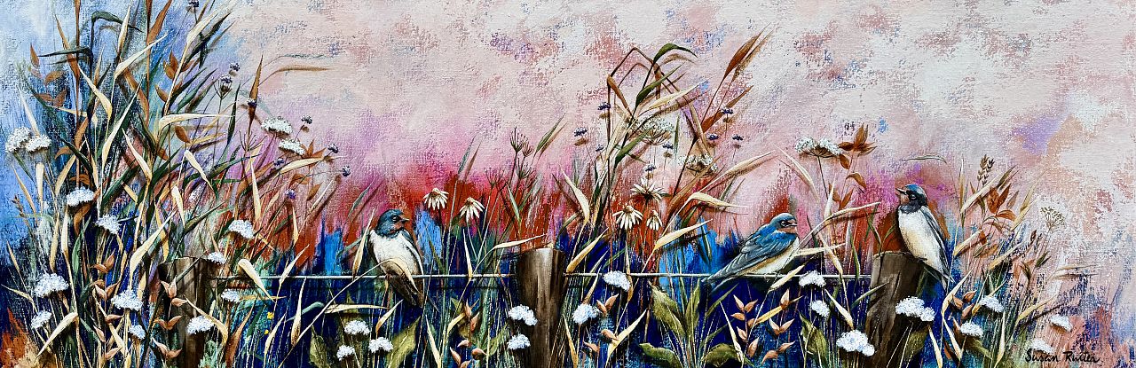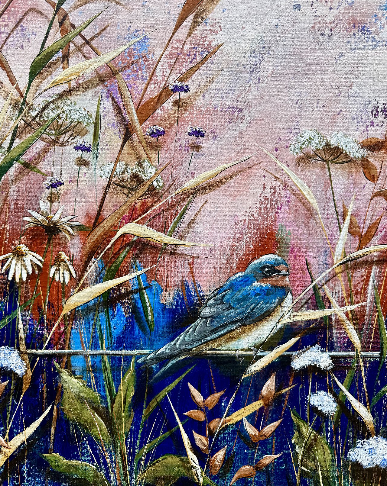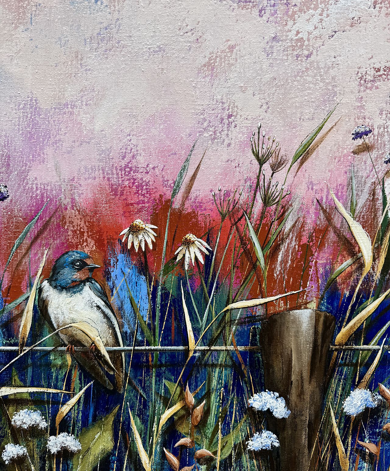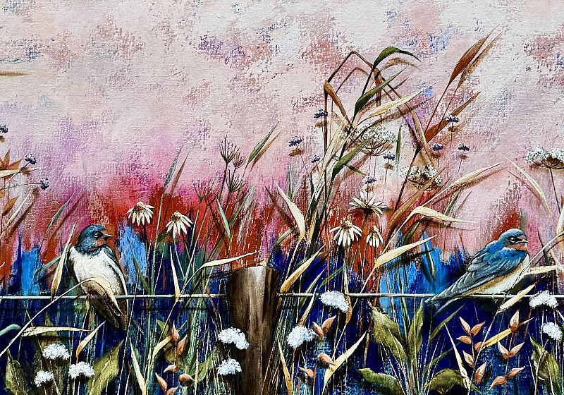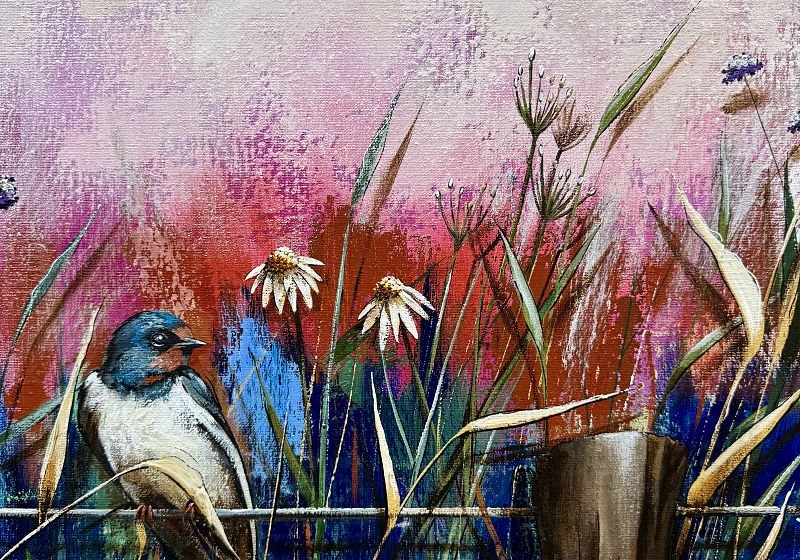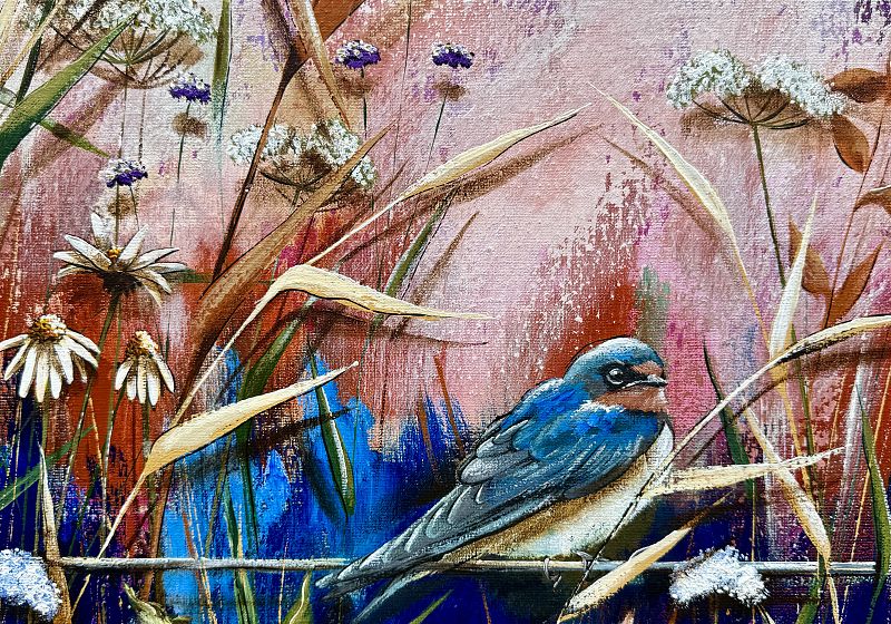Bring warmth and character into your home with this unique painting of a lovely swallows. Due to the many layers and textures, this work of art continues to fascinate you again and again.