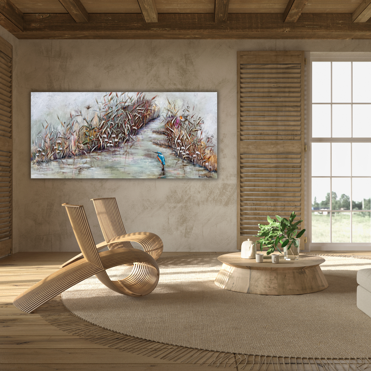 Nu hangt 'Whispers of Stillness' op zijn plek. Het brengt rust, laat de ruimte ademen en zorgt voor samenhang. En Ruud en Marjolein? Die genieten elke dag opnieuw.