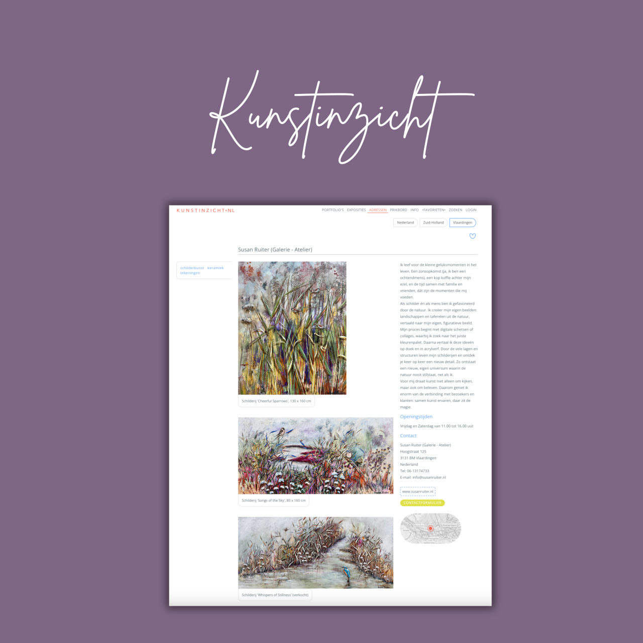 A while ago we visited Susan Ruiter's studio in Vlaardingen. We were super enthusiastic about the beautiful paintings that can be admired there. The fact that you can also see Susan at work live is worth a trip to Vlaardigen!